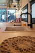 Der vollflächige Zirbenholz-Plafond sowie die diffusionsoffene Konstruktion mit Holzfaserdämmung an Wänden und Plafond schaffen ein dauerhaft angenehmes Raumklima. Im Innenausbau kommen hochwertige Möbelplatten mit geprüften Emissionswerten, langlebige Marken-Beschläge und präzise verarbeitete Einbauten zum Einsatz.